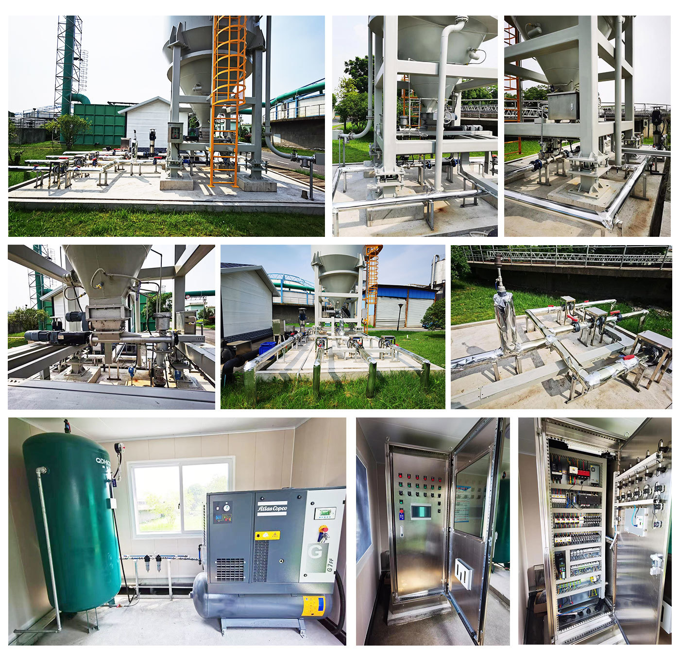 我公司微粉料投加系统采用高速射流技术,将配制、混合、投加三个过程集成为一体连续投加工艺。采用正压气流输送方式将粉末活性炭经过上料管道送入专用储料仓。通过储存仓中机械破拱、气流破拱装置、振动破拱机构和料仓下部的犁刀搅拌装置被输送到精密定量的相嵌双螺旋中,经过精密定量螺旋计量的粉末活性炭由输送螺旋输送进入高速射流混合器传质腔体中,与射流载体瞬间混合,粉体药剂在运动过程中被强制分散到射流载体中,并在射流器尾部的扩散器中通过压力变化快速扩散成均匀地悬浊液,输送到投加点与待处理的水混合,便捷、高效、精准计量、全自动无尘投加系统。